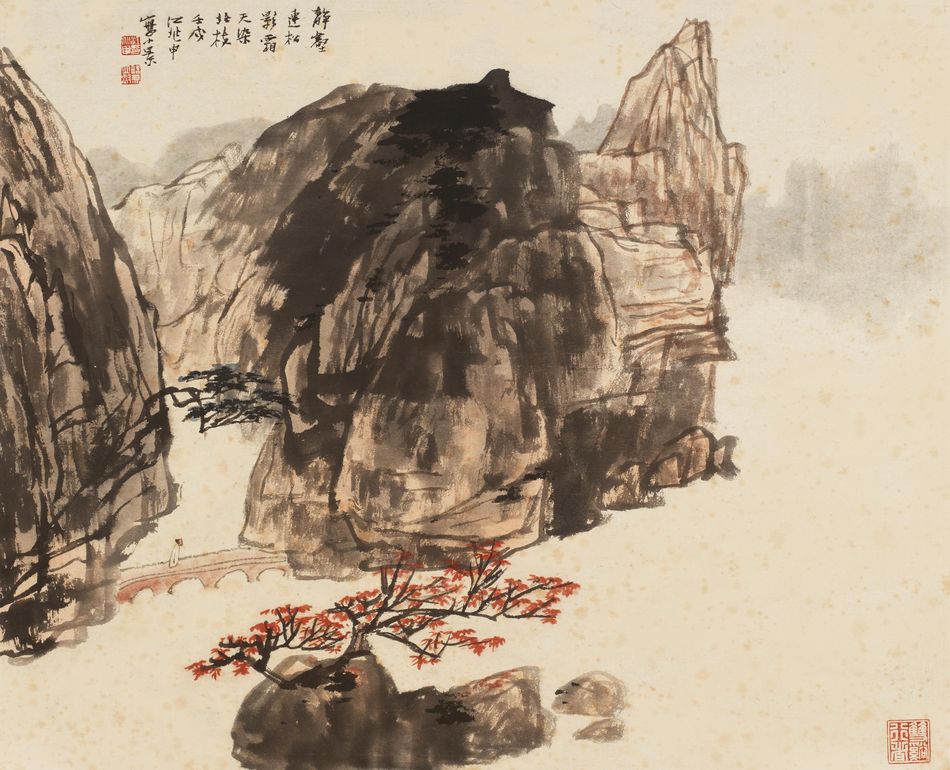 款識:靜壑連松影,霜天染北枝。壬戌,江兆申寫小景。