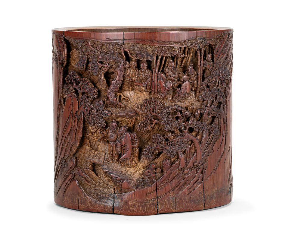 清 竹雕高士雅集圖筆筒