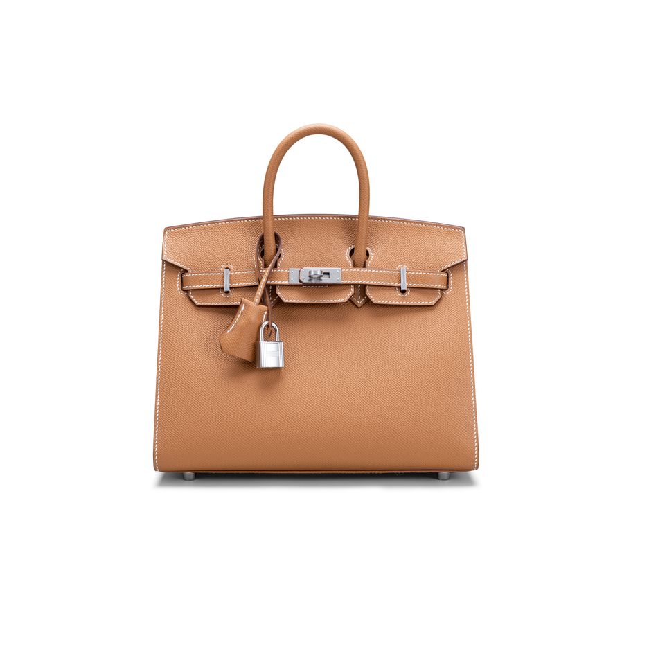 駝色EPSOM牛皮25公分外縫柏金包附銀色金屬配件