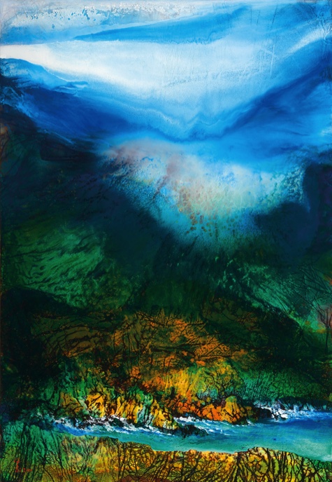 簽名左下:金水 2010 簽名畫背:詹金水 2010年 100P 高山晨曦