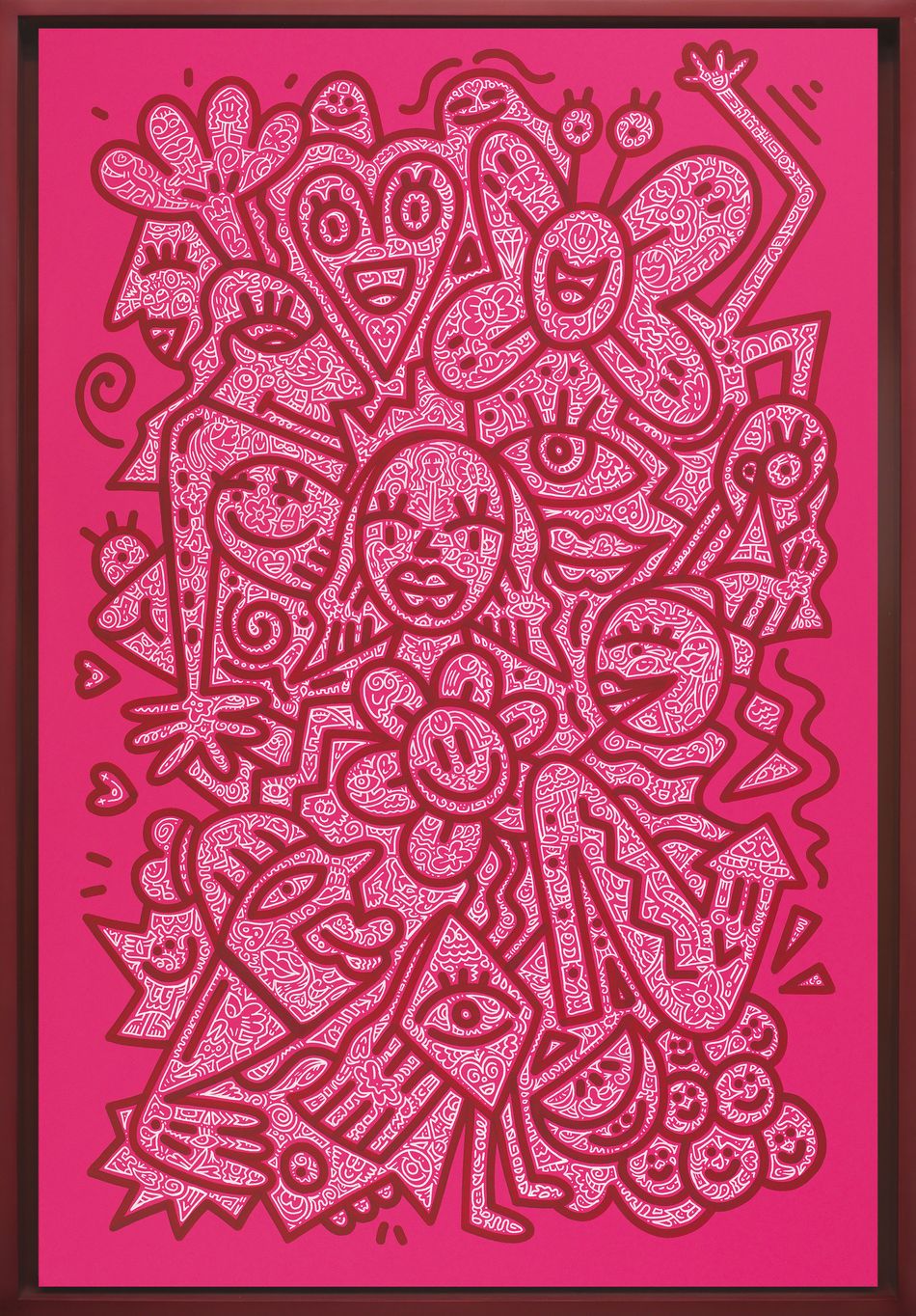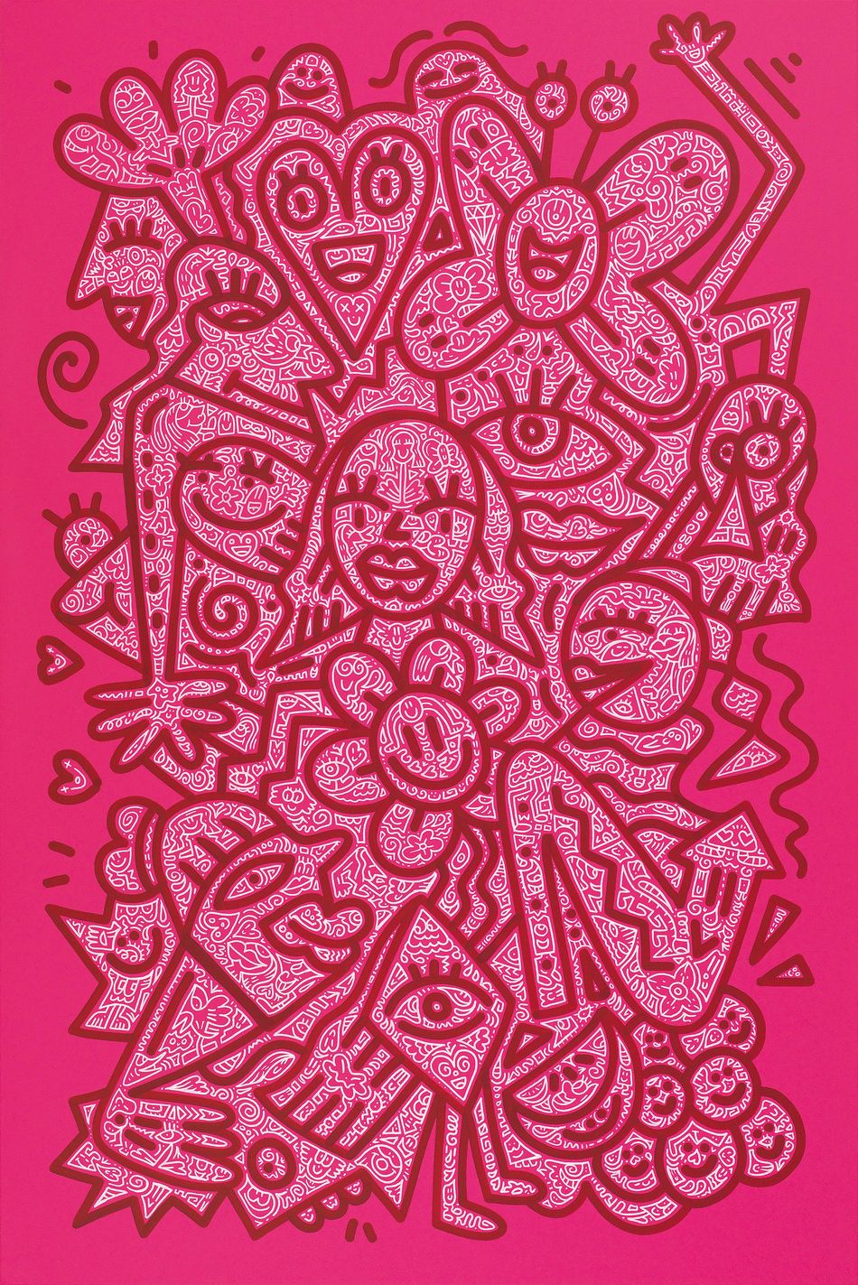 2022年初上海K11開展《戀愛中的塗鴉先生(Doodle in Love)》史無前例地大規模展出藝術家多件彩色塗鴉作品。完整地把MrDoodle從墜入愛河到2021迎娶Mrs Doodle的過程與體悟娓娓道來,呈現了從黑白世界到色彩繽紛的浪漫愛情之旅,這段美好的關係讓M.Doodle的黑白世界變得有了色彩。而這場愛之旅早在2019《Mr Doodle Invades Sotheby’s逆襲蘇富比》就已初見甜蜜,展覽中的塗鴉新作以東西方名畫為藍本,包括《蒙娜麗莎》、《呐喊》、《神奈川衝浪裏》、常玉大作《曲腿裸女》等名作悉數登場。