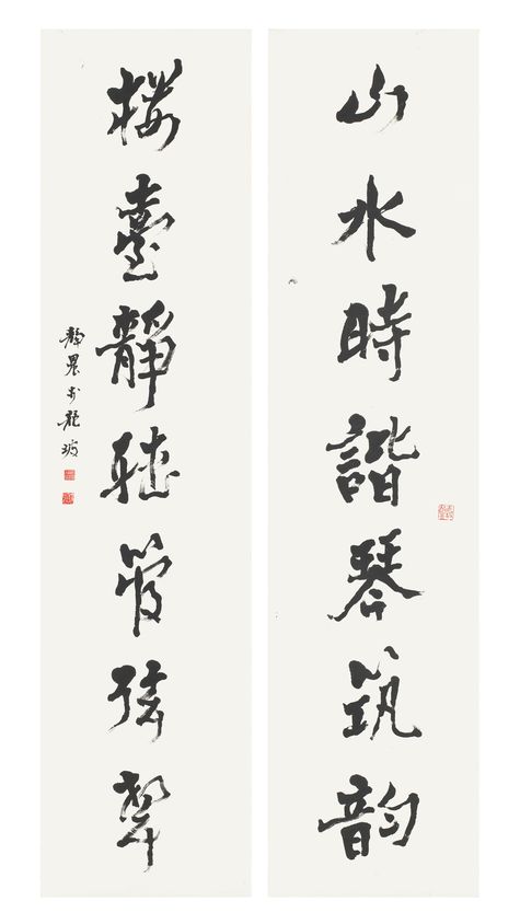 釋文:山水時諧琴筑韵,樓臺靜聽管絃聲。